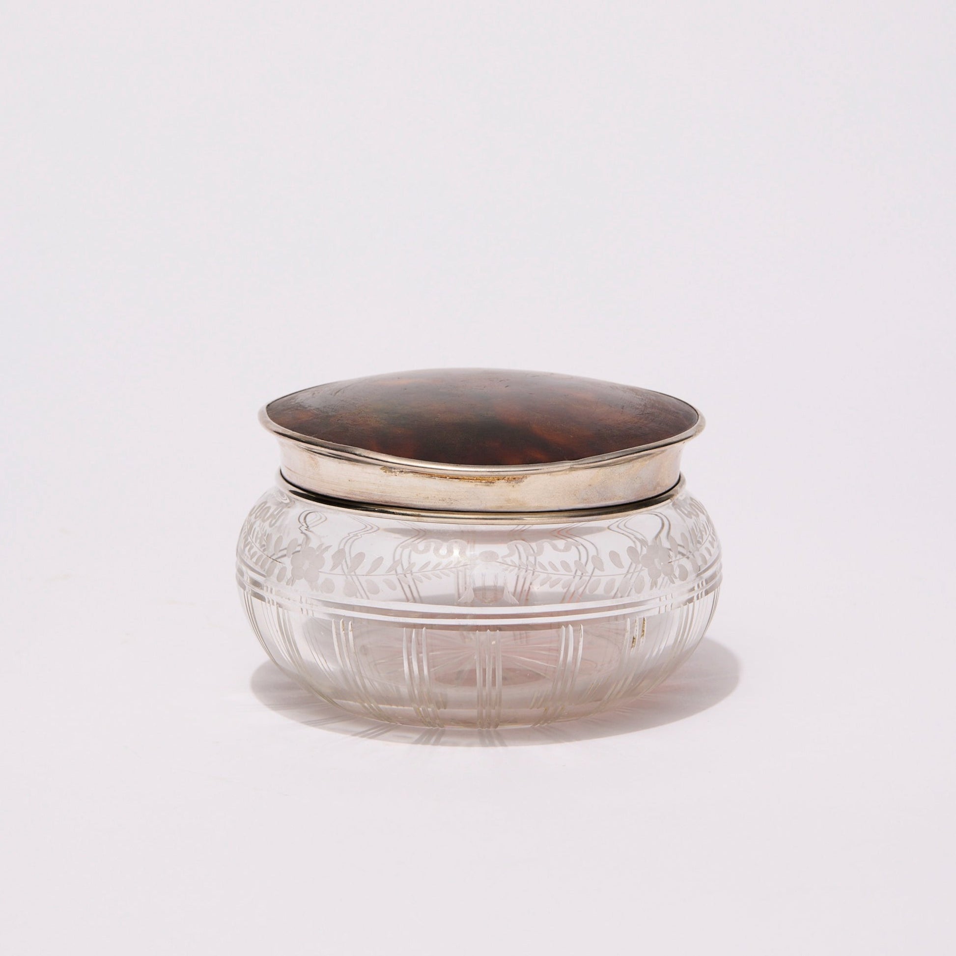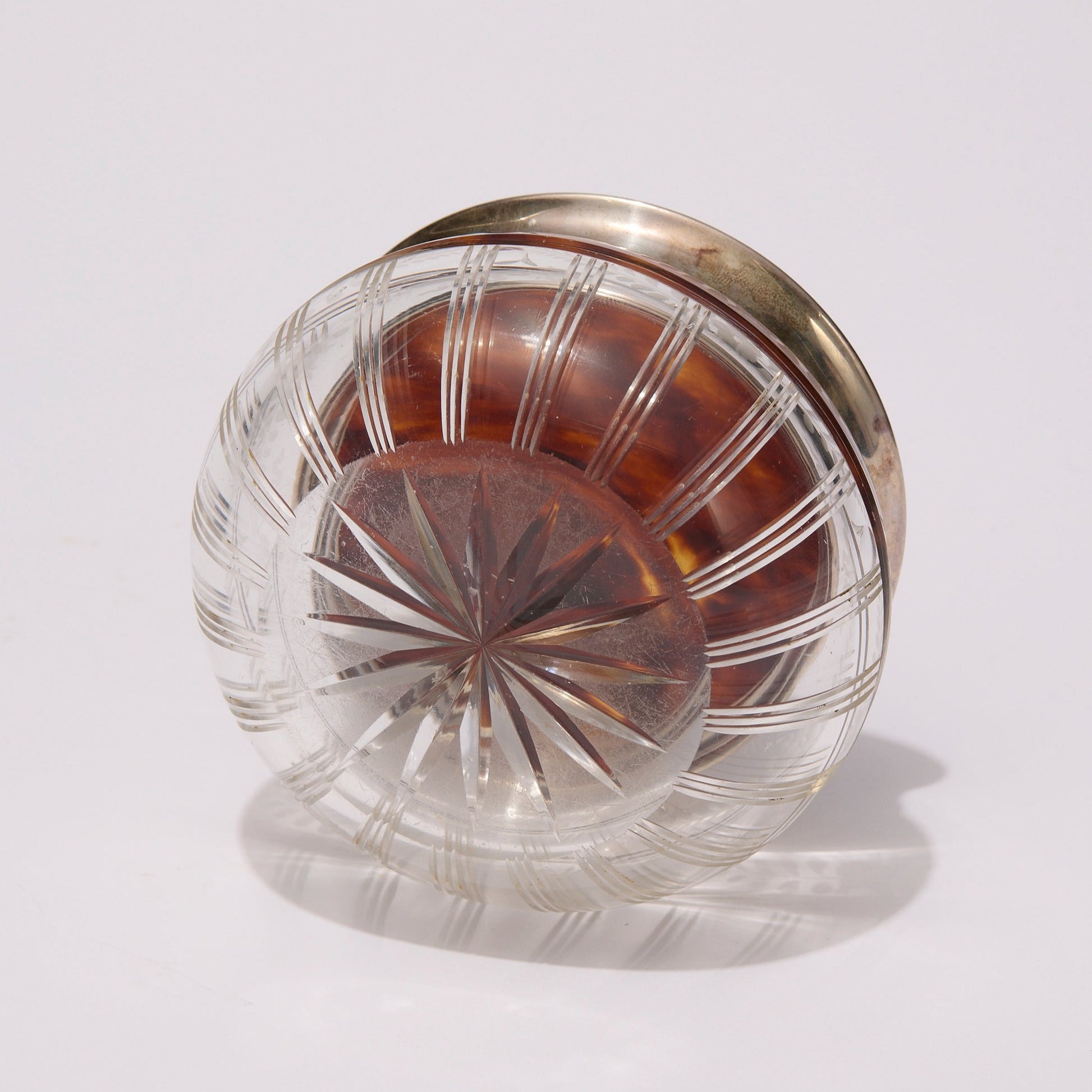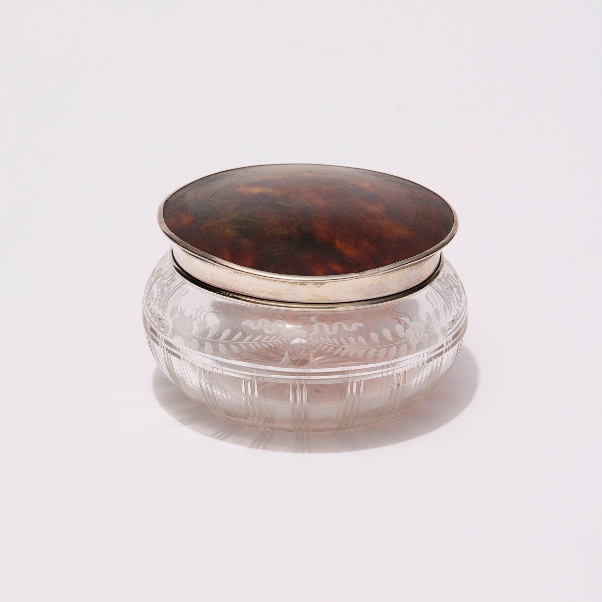 | Crystal and Silver Jar with Tortoiseshell Lid. They don't make them like this any more! Impeccably-treasured for many years and now can be yours to own. 10 x 7cm Condition: Good Questions regarding this item? Contact us, we're happy to answer. |