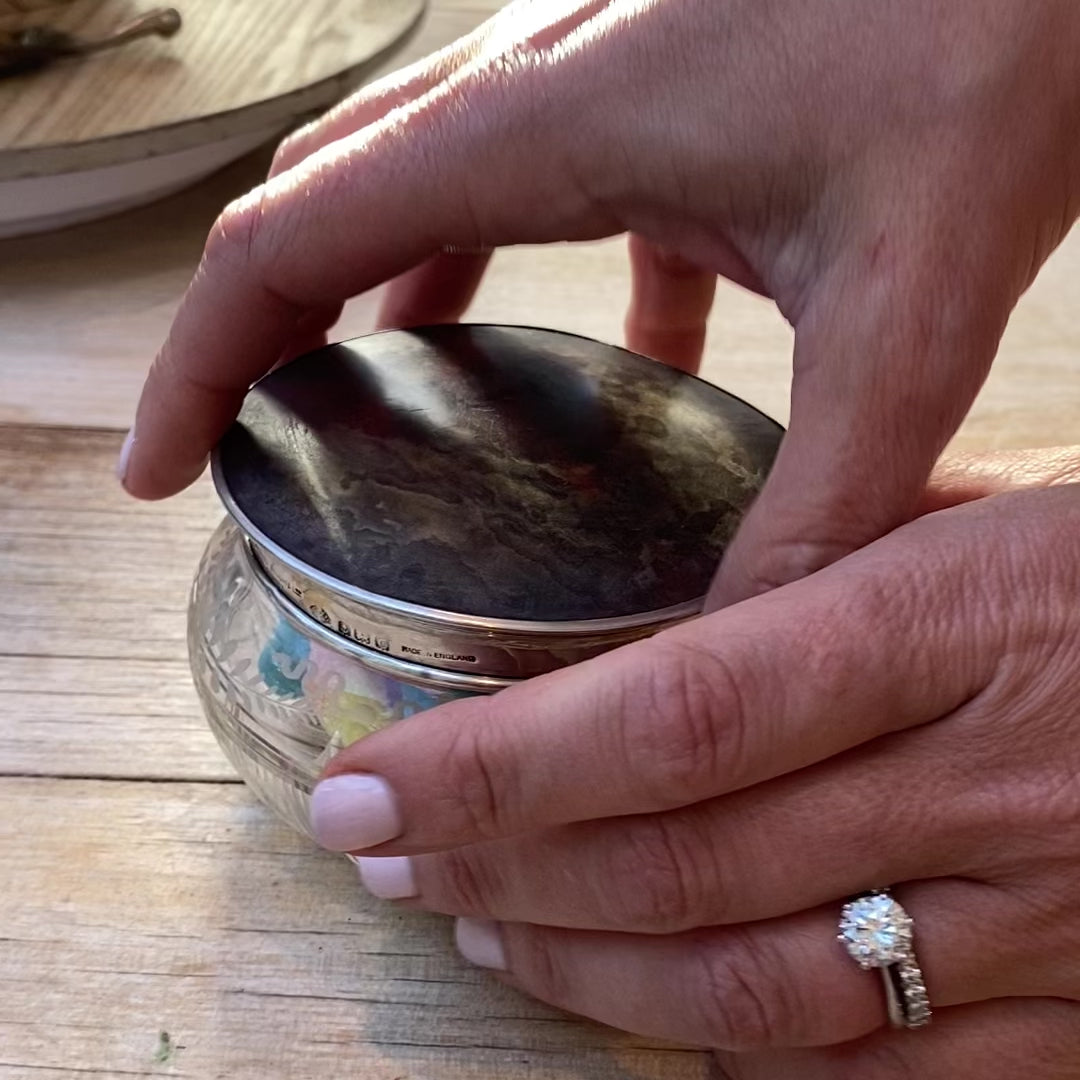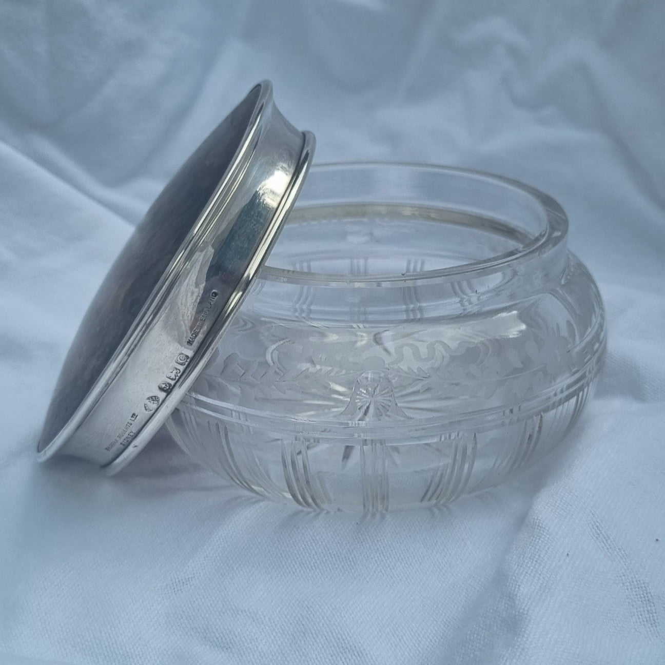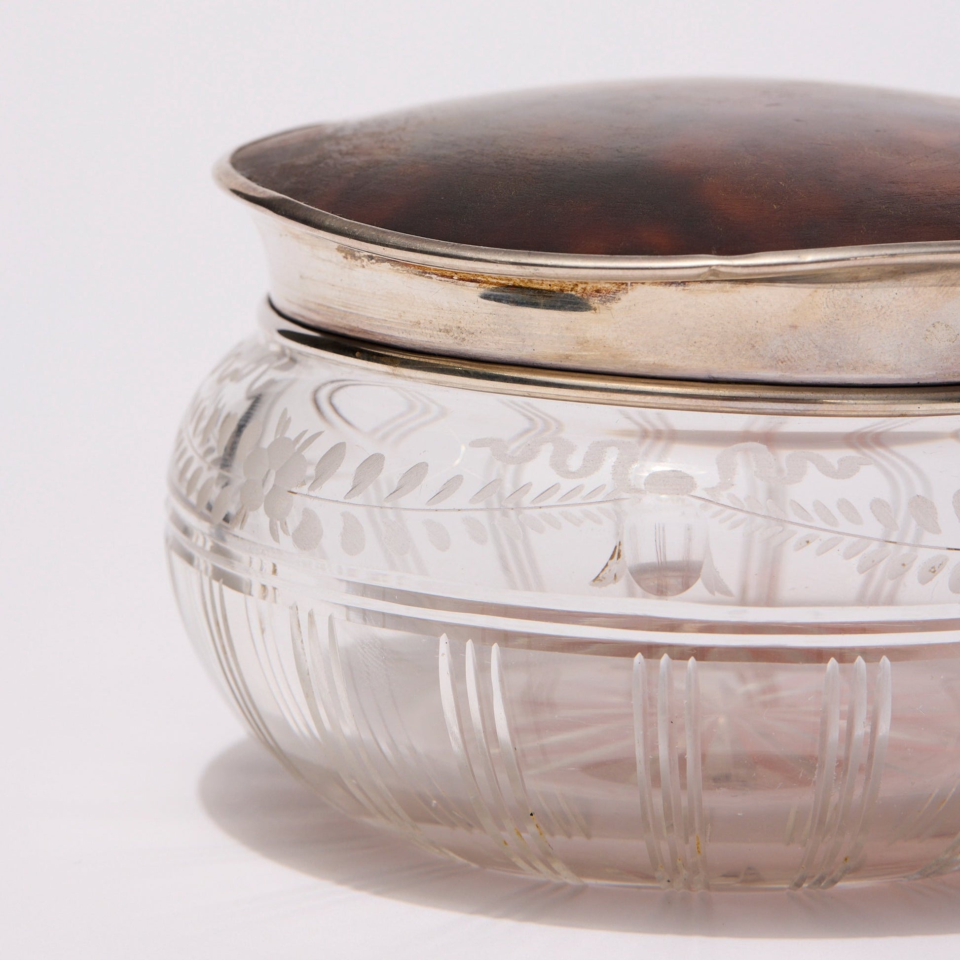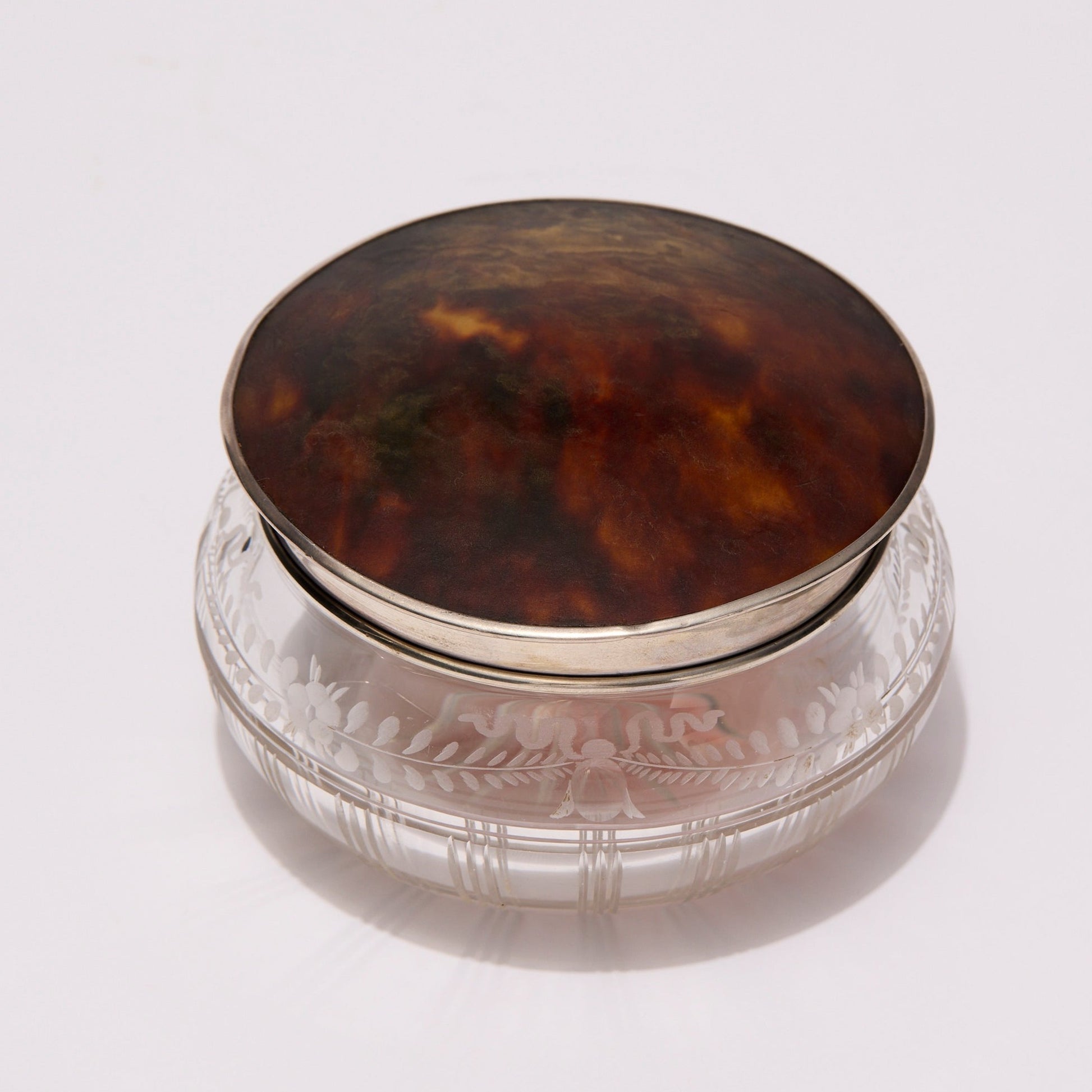 | Crystal and Silver Jar with Tortoiseshell Lid. They don't make them like this any more! Impeccably-treasured for many years and now can be yours to own. 10 x 7cm Condition: Good Questions regarding this item? Contact us, we're happy to answer. |
